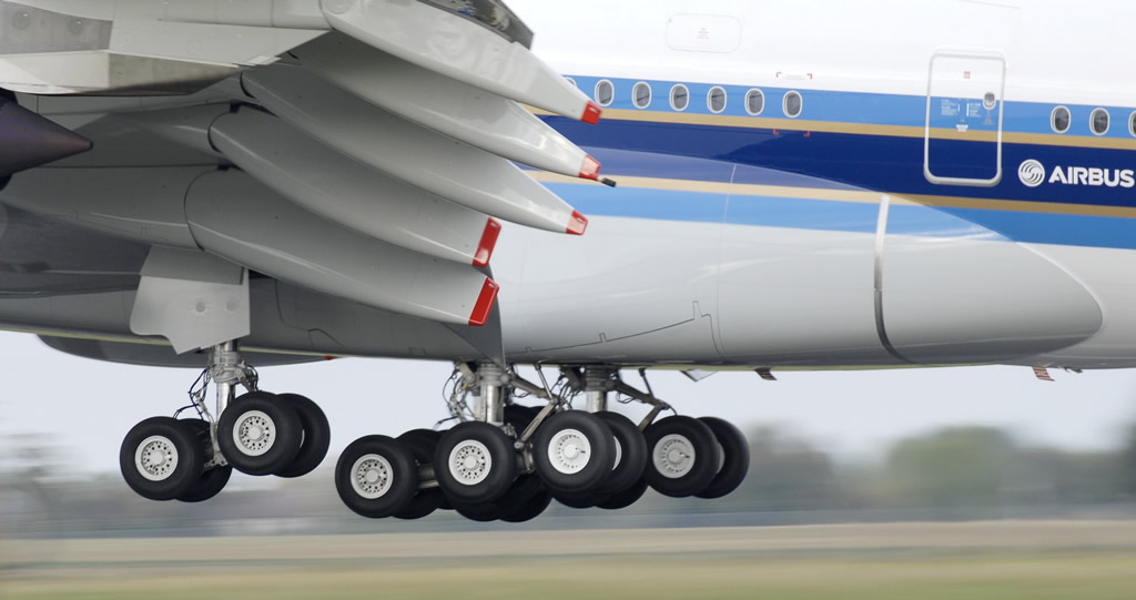 Landing gear configuration on the Airbus A380 (Photo by DELEHELLE Eric) |